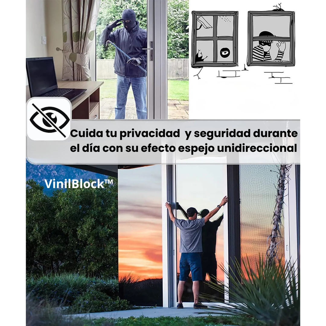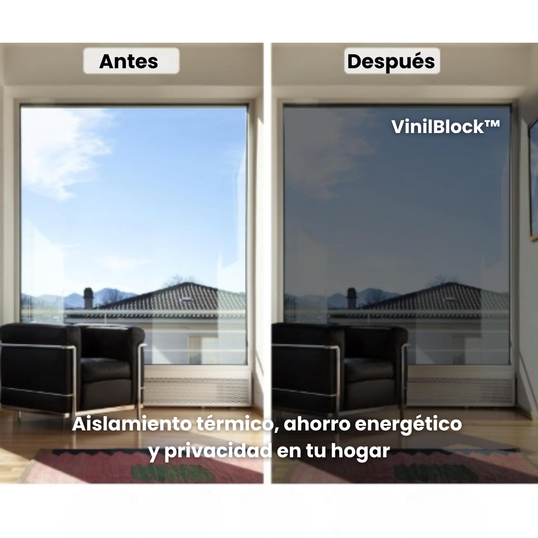 Con VinilBlock™ bloquea el calor, los rayos UV y las miradas, manteniendo tu hogar fresco, luminoso y privado sin gastar en aire acondicionado.